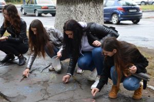 Наступний день тижня дошкілля, 26 вересня, був насичений різноманітними та цікавими заходами. 9.00 – 10.00 викладачі кафедри теорії та методик дошкільної освіти та студенти спеціальності “Дошкільна освіта” провели арт-проект «Світ дошкілля у твоїх долонях». Студенти, викладачі, декан педагогічного факультету, а також перехожі із задоволенням малювали крейдою на асфальті та робили відбитки кольорових долоньок на шпалерах.