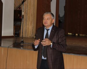 На початку заходу вітальне слово виголосив Сергій Копилов, ректор університету. Він привітав присутніх із прийдешніми святами і побажав усім миру, злагоди, добробуту та успіхів у навчанні.