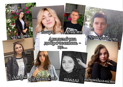 З 23 по 27 листопада на факультеті корекційної та соціальної педагогіки і психології члени комісії з питань академічної доброчесності К-ПНУ (доцент Оксана Логвіна, голова студентської ради Вікторія Сінкевич), організували «Тиждень академічної доброчесності на К-СПП», який, з огляду на карантинні обмеження, провели онлайн. Мета заходу – популяризація принципів академічної доброчесності, підвищення рівня академічної культури, стимулювання до створення власних ідей в академічній спільноті та інформування про принципи академічної доброчесності в нашому університеті.