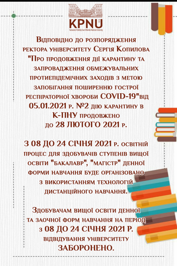 Січ 6, 2021 Діана Гаврушко Актуально, Анонс, Інформація, Кам'янець-Подільський національний університет імені Івана Огієнка, Новини університету До уваги учасників освітнього процесу К-ПНУ!
