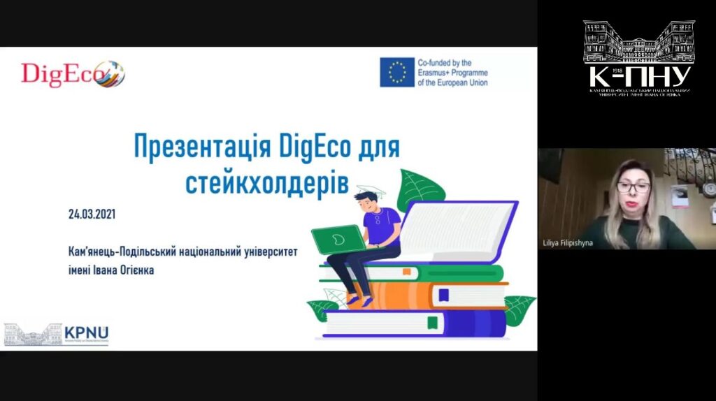 24 березня 2021 року в Кам’янець-Подільському національному університеті імені Івана Огієнка відбулася презентація проєкту Програми ЄС Еразмус+ DigEco для стейкхолдерів.