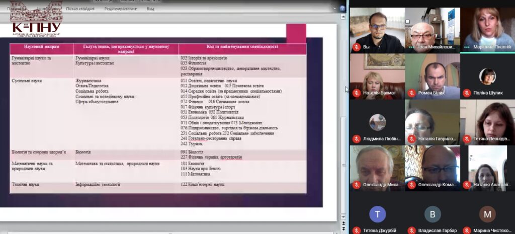 07 квітня 2021 року відбулося засідання наукової ради К-ПНУ. Іван Михайлович Конет, проректор із наукової роботи, доктор фізико-математичних наук, професор, голова наукової ради, поінформував членів наукової ради про нові нормативно-правові та розпорядчі документи в галузі науки. Зокрема, на засіданні присутні розглянули результати державної атестації закладів вищої освіти в частині провадження ними наукової (науково-технічної) діяльності, затверджені наказом МОН №375 від 25.03.21 р. Відповідно до наказу із двох наукових напрямів, поданих університетом до розгляду, атестований науковий напрям «Суспільні науки» на кваліфікаційну групу «Б» терміном на 5 років, науковий напрям «Гуманітарні науки» після доопрацювання буде повторно представлений для оцінювання.