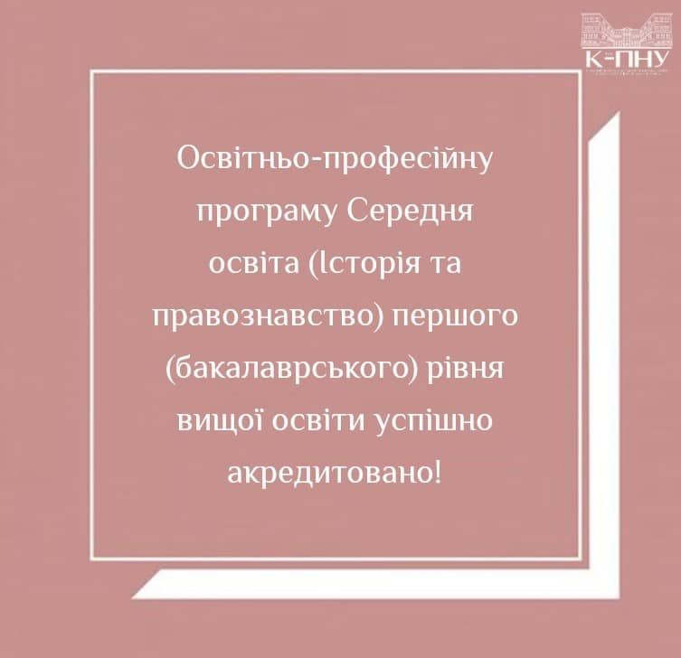За результатами розгляду зазначеного питання Кам’янець-Подільський національний університет імені Івана Огієнка успішно завершив процедуру акредитації освітньо-професійної програми Середня освіта (Історія та правознавство) першого (бакалаврського) рівня вищої освіти.