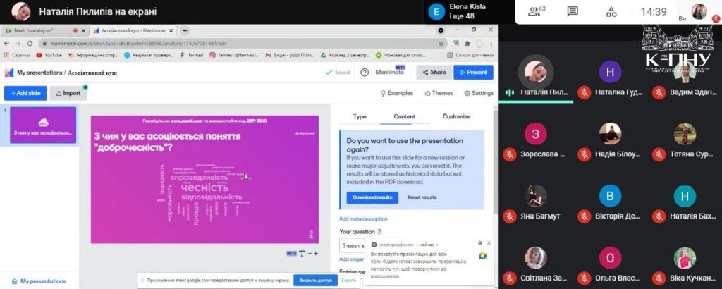 Наталія Пилипів, секретар комісії з питань академічної доброчесності К-ПНУ, студентка 4 курсу спеціальності 013 Початкова освіта педагогічного факультету Кам’янець-Подільського національного університету імені Івана Огієнка, провела інтерактив зі здобувачами вищої освіти ЗВО України з метою формування академічної культури студентів.