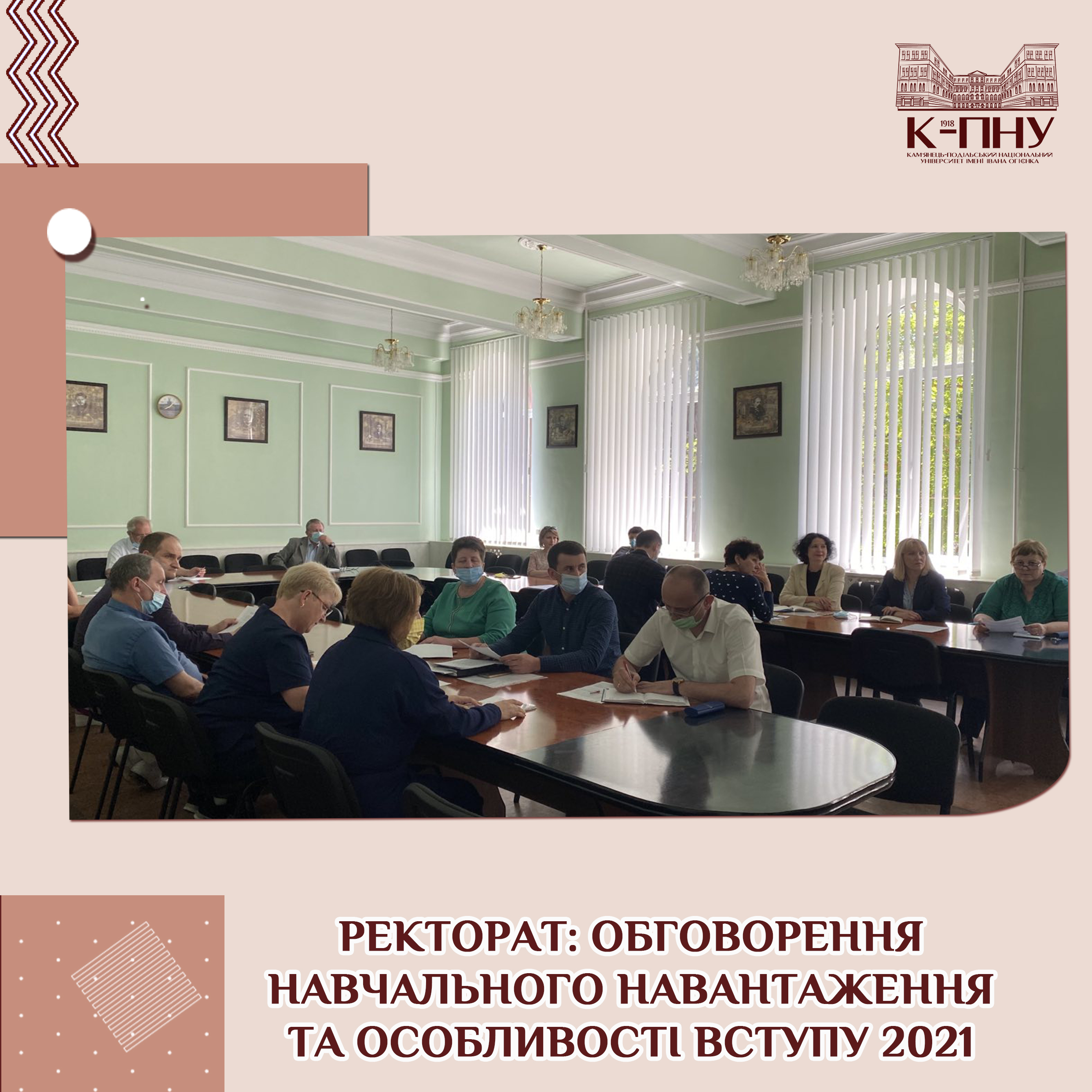 11 червня відбулося засідання ректорату, під час якого обговорили важливі питання освітнього процесу, зокрема планування навчального навантаження науково-педагогічних працівників і стан підготовки до вступної кампанії 2021.