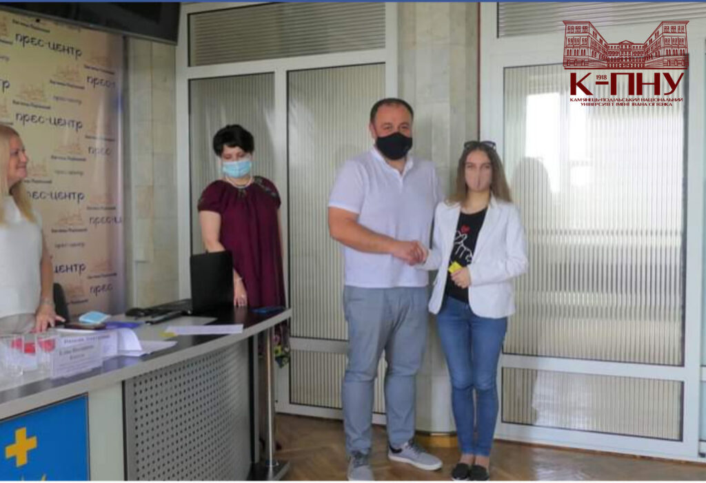На виконання довгострокової програми співпраці між Центром та кафедрою під назвою «Практична підготовка майбутніх фахівців соціальної сфери для подальшого здійснення професійної та волонтерської діяльності» 11 червня 2021 року в Кам’янець-Подільській Міській раді студенти Sz1-B19 групи спеціальності Соціальне забезпечення отримали посвідчення Волонтера та уклали договір співпраці із Центром. Студенти презентували своє бачення поняття Волонтер, підготували відеозвіт результатів навчання в Школі Волонтерів, презентували заступнику міського голови трудову книжку волонтера, футболку з логотипом «Волонтер» та емблемою Центру, дали інтерв’ю міському Радіо FM. Завідувач кафедри, доктор педагогічних наук, доцент Тетяна Опалюк вручила подяку за співпрацю директору Центру Еліні Ковтун.