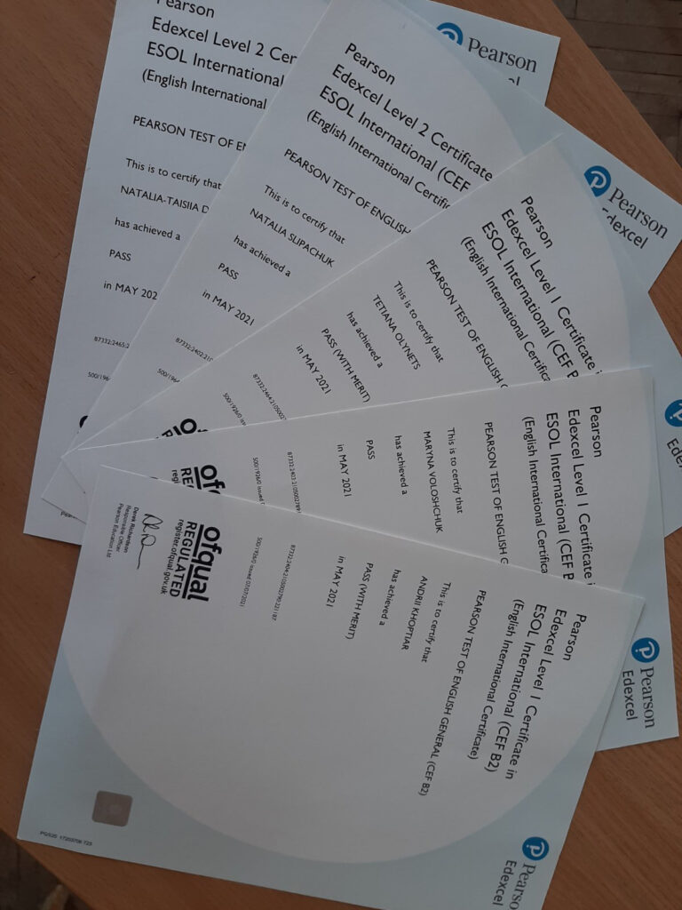 22 липня 2021 року у Кам’янець-Подільському національному університеті імені Івана Огієнка відбулося чергове урочисте вручення міжнародних сертифікатів Pearson Test of English General (Level B2, C1) слухачам Лінгвістичного центру – науково-педагогічним працівникам К-ПНУ, які склали травневу сесію в авторизованому центрі тестування English Assessment Centre Khmelnytsky. За результатами успішного тестування вони отримали міжнародні сертифікати.