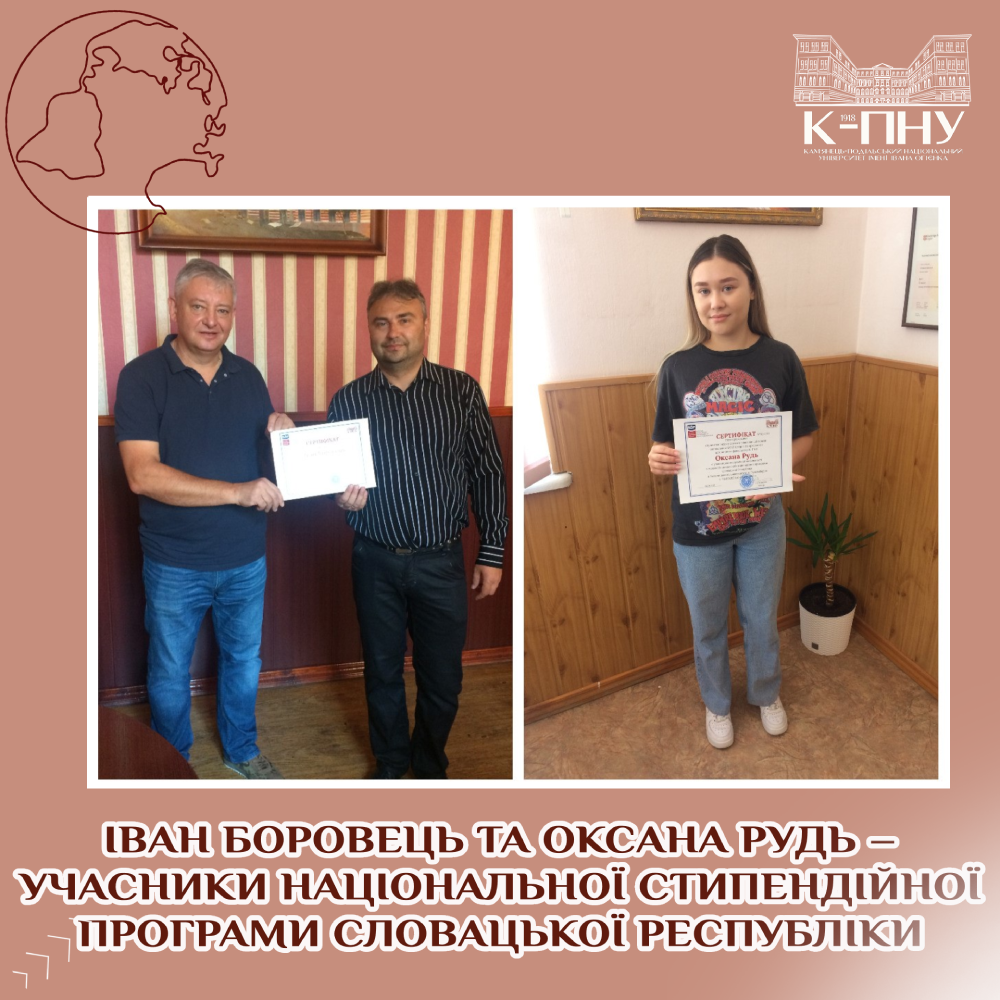 Із приємністю повідомляємо про те, що кандидат історичних наук, доцент кафедри всесвітньої історії Іван Боровець та студентка спеціальності 032 (Історія та археологія) Оксана Рудь розпочинають свою міжнародну академічну мобільність у межах Національної стипендійної програми Словацької Республіки. Наприкінці минулого тижня ректор університету Сергій Копилов вручив сертифікати учасникам Програми та привітав їх із перемогою.