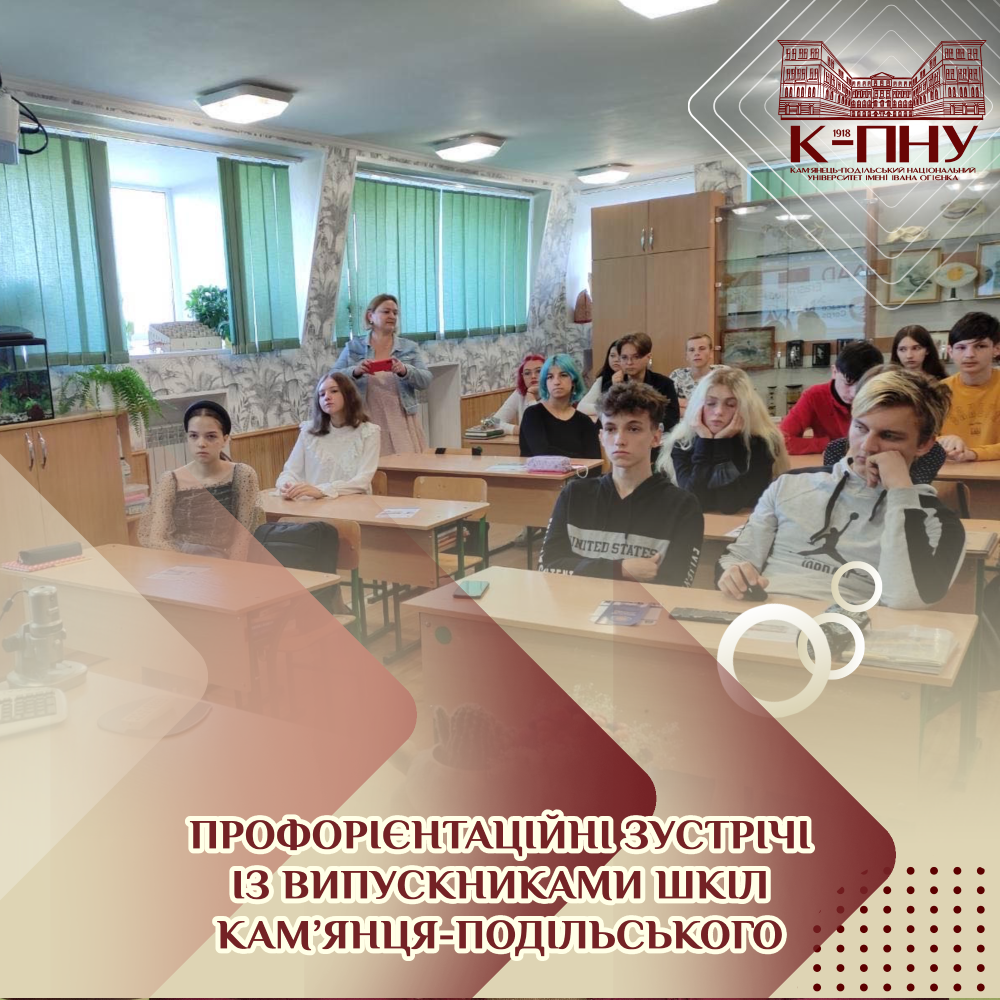 16 вересня відбулися профорієнтаційні зустрічі науково-педагогічних працівників і студентів К-ПНУ із випускниками шкіл міста Кам’янця Подільського. Із профорієнтаційною бесідою до учнів Кам’янець-Подільського ліцею І-ІІІ ступенів «Славутинка» Хмельницької обласної ради» завітали Алла Хоптяр, декан факультету іноземної філології, Маргарита Козерацька, студентка 3 курсу спеціальності Середня освіта (Мова і література (німецька), Наталія Стахнюк, завідувач кафедри слов’янської філології та загального мовознавства, а також Ганна Братиця, старший викладач кафедри німецької мови.