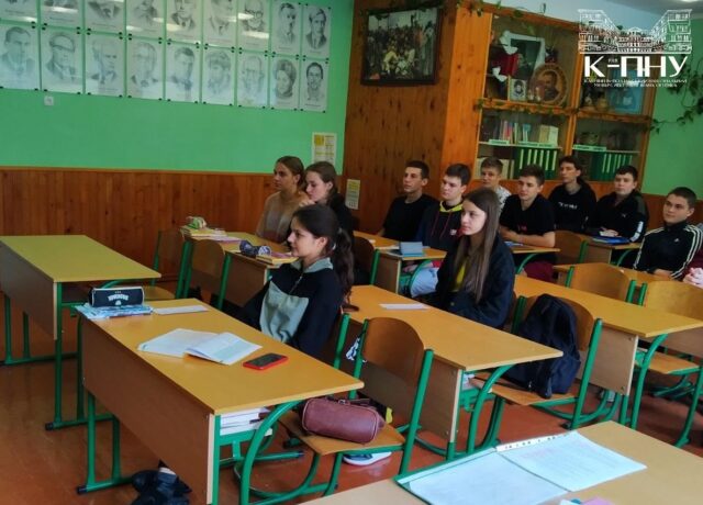 22 вересня з учнями Кам’янець-Подільського навчально-виховного комплексу №13 у складі спеціалізованої загальноосвітньої школи І-ІІІ ступенів з поглибленим вивченням польської мови і гімназії Хмельницької області спілкувалися старший викладач кафедри англійської мови, кандидат філологічних наук Наталія Фрасинюк і доцент кафедри соціальної педагогіки і соціальної роботи, кандидат педагогічних наук Олег Опалюк.
