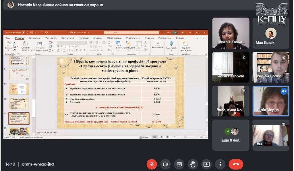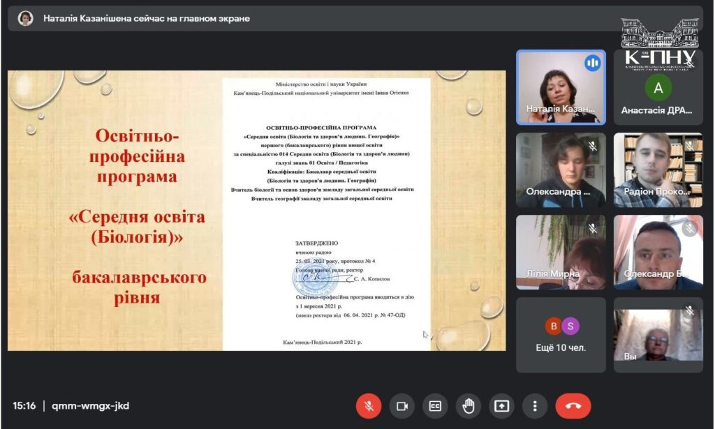 До зустрічі доєднався науковий співробітник , доктор філософії (ботаніка) Національного ботсаду ім. М.М. Гришка НАН України Боднарчук О.П. Також у зустрічі взяли участь студенти і магістранти природничо-економічного факультету. Кожен ділився своїм досвідом. Отримано низку пропозицій, які покращать якість ОПП Середня освіта. Біологія та основи здоров’я людини . Географія.