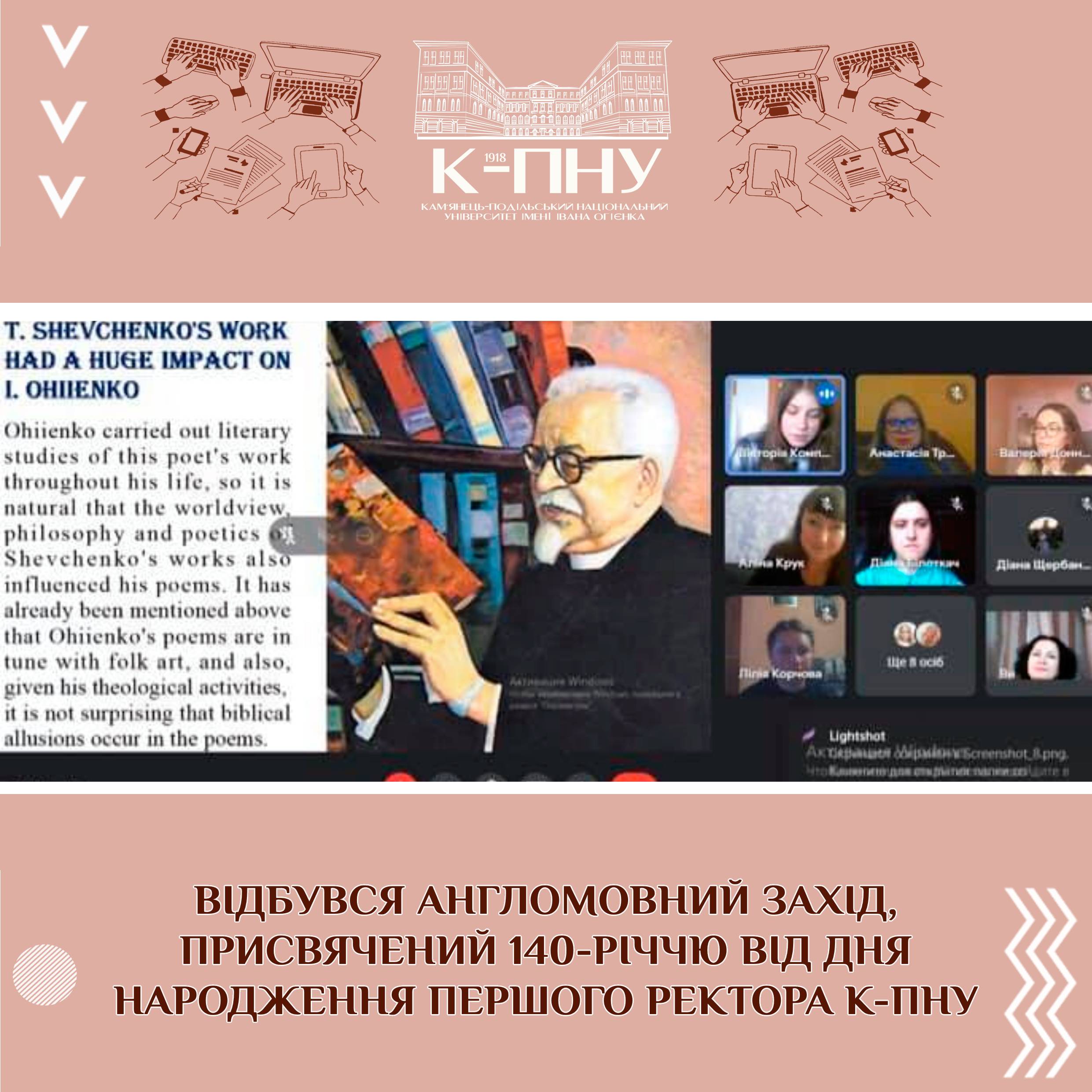 Низка подій, присвячених 140-річчю від дня народження першого ректора Кам’янець-Подільського національного університету – Івана Огієнка, поповнюється науковими заходами 03 листопада факультет іноземної філології, зокрема декан, кандидат філологічних наук, доцент Алла Хоптяр, завідувач кафедри іноземних мов, кандидат педагогічних наук, доцент Анастасія Трофименко і кандидат філологічних наук, старший викладач Аліна Крук, провели англомовний захід вшанування пам’яті «витязя духу» та його спадку.