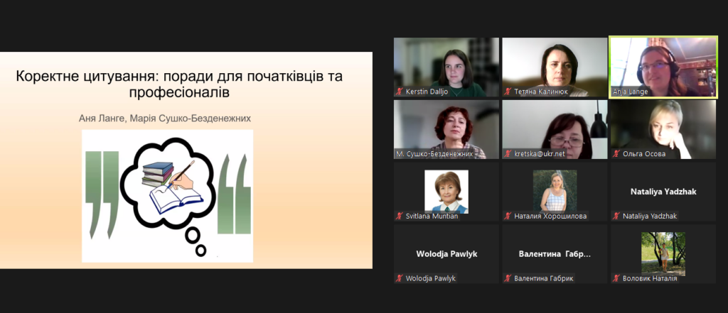 Під час воркшопів лектори ДААД та українські науковці поділилися практичними порадами. Під час воркшопу «Коректне цитування: поради для початківців та професіоналів» (від Ані Ланге, Марії Сушко-Безденежних) на прикладі вправ доповідачі продемонстрували, яким чином цитувати коректно та оформлювати цитати без зайвих зусиль, пояснили, чим відрізняються способи цитування, прийняті в Німеччині та в Україні. На наочних прикладах учасники аналізували, де закінчується цитування та починається плагіат. Досвідом оформлення успішної презентації поділилися Керстін Дальйо та Аня Ланге.