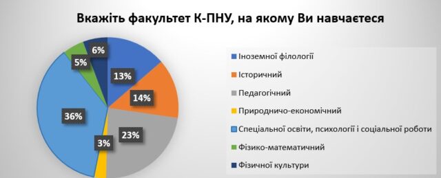 Найбільш активними учасниками опитування стали здобувачі вищої освіти факультету спеціальної освіти, психології і соціальної роботи 36% та педагогічного факультету 23%/