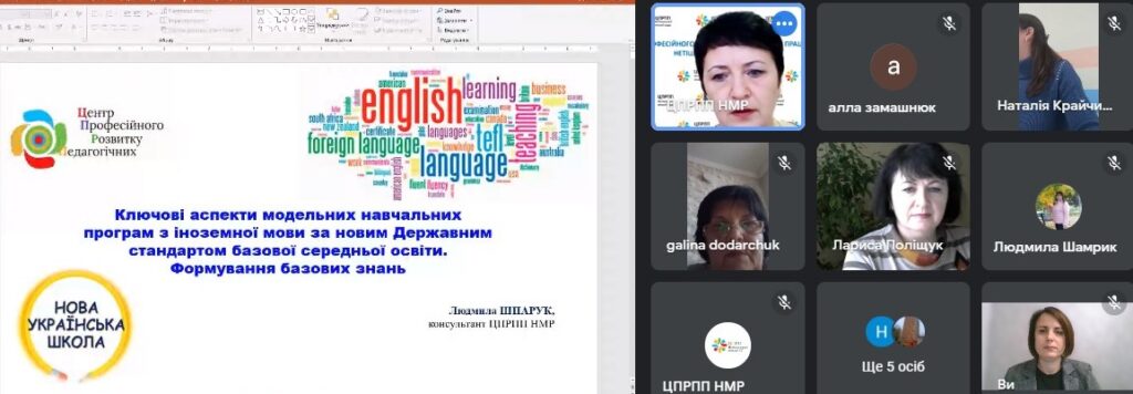 Стратегічною метою впровадження концепції Нової української школи є формування ключових компетентностей здобувачів освіти, необхідних для успішної самореалізації в суспільстві. Із 2022-2023 н.р. розпочнеться впровадження Модельних навчальних програм для 5–9-х класів загальноосвітніх навчальних закладів. Саме це питання стало предметом обговорення на вебінарі «Ключові аспекти Модельних навчальних програм з іноземної мови за новим Державним стандартом базової середньої освіти. Формування базових знань» для спільноти вчителів іноземних мов Нетішинської міської ОТГ, який 10 грудня провела завідувач кафедри німецької мови, кандидат педагогічних наук, доцент Тетяна Калинюк разом із консультантом Центру професійного розвитку педагогів Нетішинської міської ради Людмилою Шпарук.