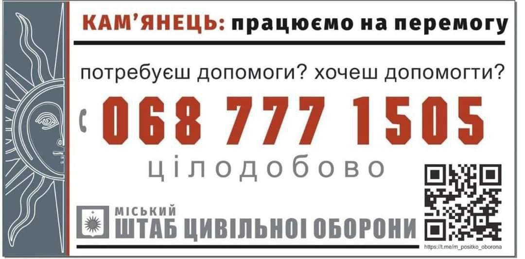 У Кам’янці Подільському активно працює міський штаб цивільної оборони, усі хто потребує допомоги, або хочуть допомогти, можуть звернутися за телефонами :