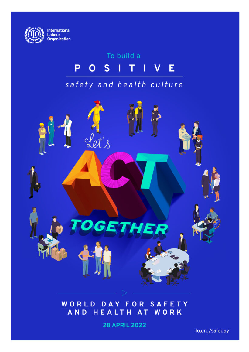Щороку МОП визначає тему (девіз) Всесвітнього дня охорони праці. Новий девіз Всесвітнього дня безпеки та здоров’я на роботі – 2022: «Формуємо разом позитивну культуру безпеки та здоров’я» (World Day for Safety and Health at Work 2022 — Act together to build a positive safety and health culture).