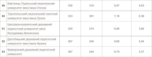 У 2021 р. К-ПНУ посів 49 місце (2020 р. – 53 місце).
