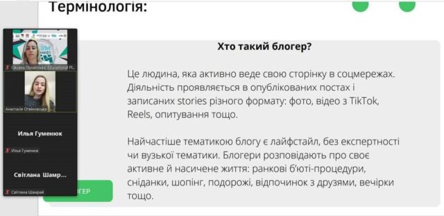 - «Основи SMM (викладачі курсу: Оксана Почапська, доцент кафедри журналістики та Анастасія Отвіновська, магістрантка спеціальності «Журналістика»).