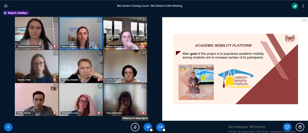 Олександра Шамаріна, провідний фахівець відділу міжнародних зв’язків презентувала розроблений проєкт «Academic Mobility Platform».