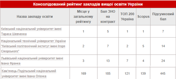 Кам’янець-Подільський національний університет імені Івана Огієнка посів 169 місце серед 250 ЗВО України.