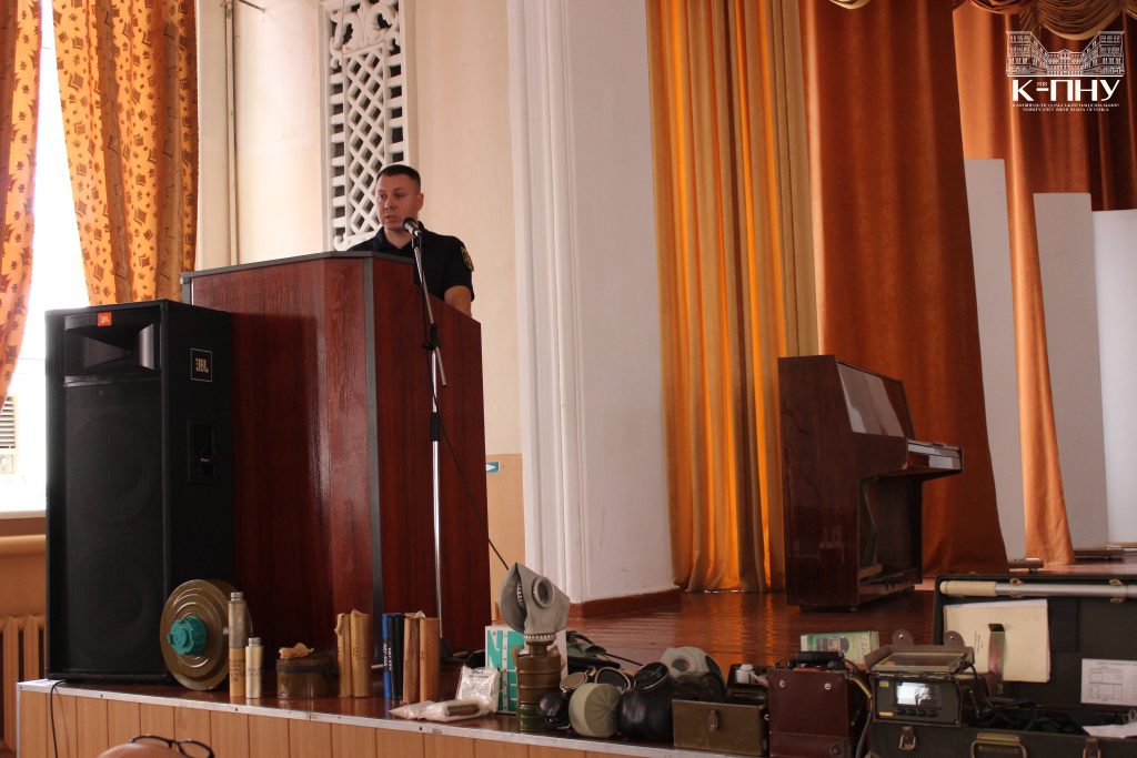 На виконання постанови Кабінету Міністрів України «Про початок навчального року під час дії правового режиму воєнного стану в Україні», Положення про організацію роботи з охорони праці та безпеки життєдіяльності учасників освітнього процесу в установах і закладах освіти (затверджено наказом МОН України від 26.12.2017 р. №1669), з метою посилення контролю за збереженням життя й здоров’я учасників освітнього процесу в умовах воєнного стану, здійснення заходів з охорони праці, безпеки життєдіяльності, цивільного захисту, попередження надзвичайних ситуацій 31 серпня 2022 р. в актовій залі К-ПНУ представники військової частини А2738 Командування Сил підтримки, м. Кам’янець-Подільський та районного управління ДСНС України у Хмельницькій області провели інструктаж із питань цивільного захисту, пожежної та техногенної безпеки в умовах воєнного стану для науково-педагогічних працівників, керівників структурних підрозділів, їх заступників та інших працівників університету.