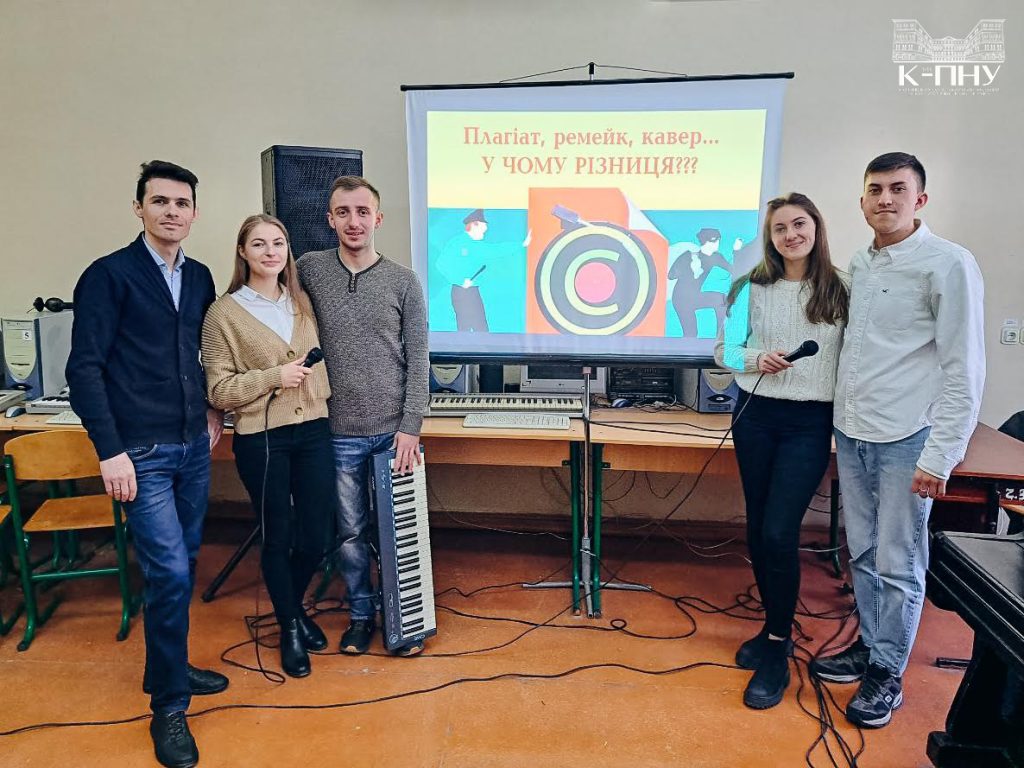 Факультети К-ПНУ також долучилися до відзначення Міжнародного дня академічної доброчесності. Відтак на педагогічному факультеті в межах підсумкового заняття з дисципліни «Комп’ютерне моделювання та аранжування музичних творів» під керівництвом кандидата педагогічних наук, старшого викладача кафедри музичного мистецтва Тараса Пухальського, відбулось обговорення основних видів порушень доброчесності у використанні авторських музичних творів, музичних фонограм, норм авторської етики в музично-виконавській і педагогічній діяльності на тему «Плагіат, ремейк, кавер – у чому різниця?».
