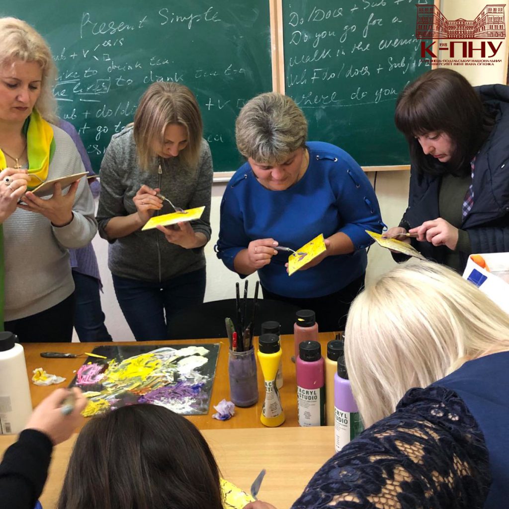 Друга частина семінару передбачала майстер-клас «Інкорпорація сучасної техніки кракелюр із традиційними образотворчими практиками в сучасній школі», який провів доцент кафедри образотворчого і декоративно-прикладного мистецтва та реставрації творів мистецтва, кандидат мистецтвознавства, доцент, член національної спілки художників України Іван Гуцул. Учасники спробували створити свій неповторний виріб, використавши сучасну техніку. Мистецькі твори Івана Андрійовича зберігаються в музеях Чернівців, Кам’янця-Подільського, Львова, Києва, Оттави (Канада), у приватних колекціях.