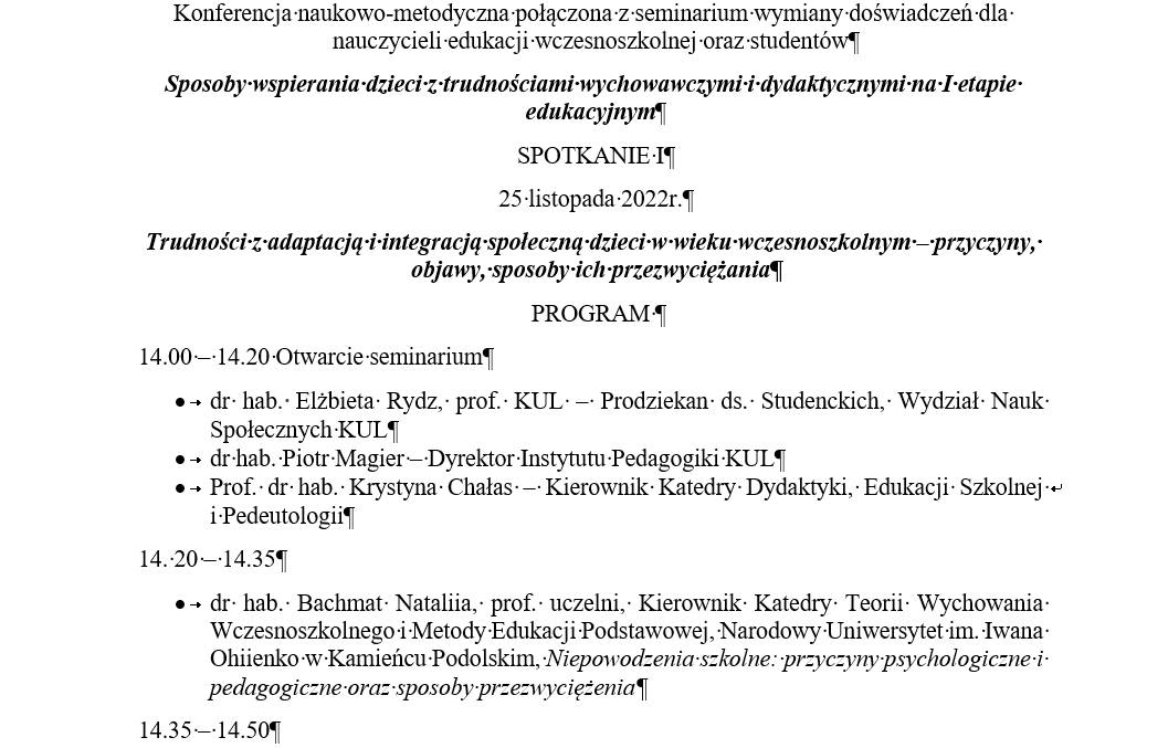 25 листопада викладачі кафедри теорії та методик початкової освіти К-ПНУ взяли участь у Науково-методичній конференції, поєднаної із семінаром з обміну досвідом для педагогів та учнівської молоді «Шляхи підтримки дітей з труднощами у вихованні та навчанні на першому етапі навчання» (ЗУСТРІЧ І «Труднощі адаптації та соціальної інтеграції дітей молодшого шкільного віку – причини, симптоми, шляхи подолання»).