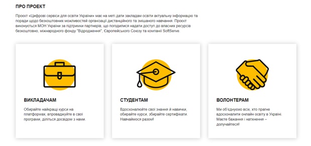 Також запрошуються викладачі до представлення напрацювань у сфері дистанційного і змішаного навчання із застосуванням online-технологій та до обміну досвідом. Зокрема, передбачається створення інструментарію для збору й узагальнення інформації від викладачів щодо відповідності різних онлайн-курсів навчальним дисциплінам й особливостям їх застосування. Також, буде доступна форма пошуку відповідних онлайн-курсів для викладачів, що починають знайомство з відкритими ресурсами.