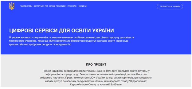 Міністерство освіти і науки України спільно з ДНУ «Інститут освітньої аналітики» у співпраці з компанією SoftServe, за підтримки проєкту «Tech To The Rescue» та краудсорсингової ініціативи OPEN/TECH 07 грудня 2022 р. провели для представників закладів освіти України всіх рівнів вебінар-презентацію інформаційного ресурсу «Цифрові сервіси для освіти України».