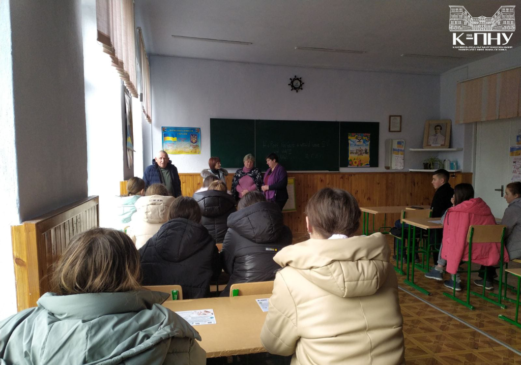З метою професійної орієнтації здобувачів освіти Кадиєвецький ліцей відвідали представники К-ПНУ: кандидат біологічних наук, професор Петро Плахтій, кандидат біологічних наук, доцент Інна Григорчук.
