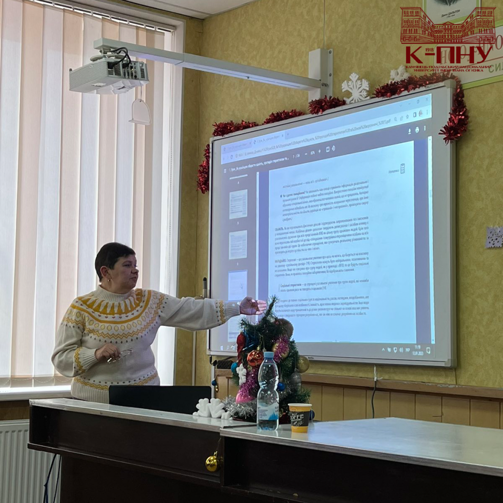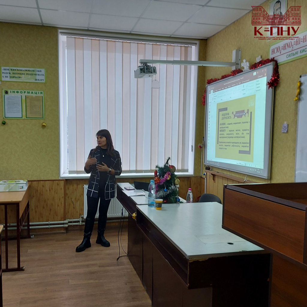 Зореслава Шевчук, кандидат філологічних наук, старший викладач кафедри української мови К-ПНУ зосередила увагу авдиторії на особливостях формування елементів наукових знань під час опанування основ академічного письма в середній і старшій школі з урахуванням норм академічної доброчесності, змоделювала практичні кейси, продемонструвала практичне застосування щодо вивчення окремих жанрів писемної наукової комунікації на уроках української мови.