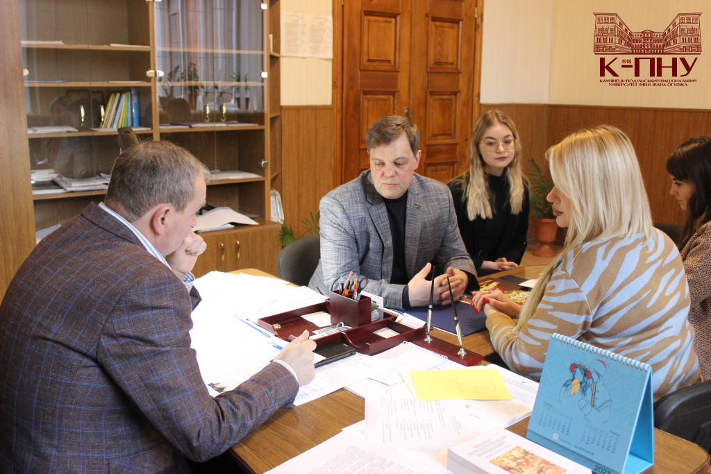 26 січня відбулася організаційна зустріч першого проректора К-ПНУ Володимира Дубінського з представниками компанії Resource Studio, зокрема заступником директора Андрієм Чевередою та керівницею арт-проєктів Крістіною Устименко.