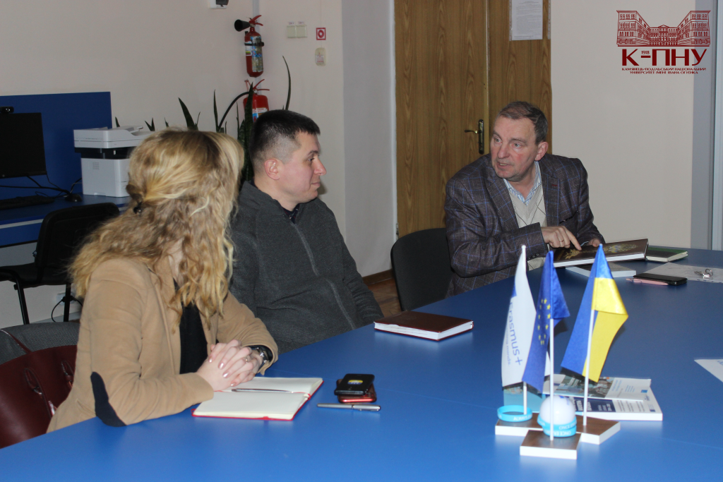 27 січня до К-ПНУ завітали виконавчий директор, керівник відділу політичної освіти Центру «Ейдос» ( http://eidos.org.ua/#all ) Ольга Будник і менеджер проєкту «Сприяння економічному зростанню в Кам’янець-Подільській громаді» Володимир Грушевський.