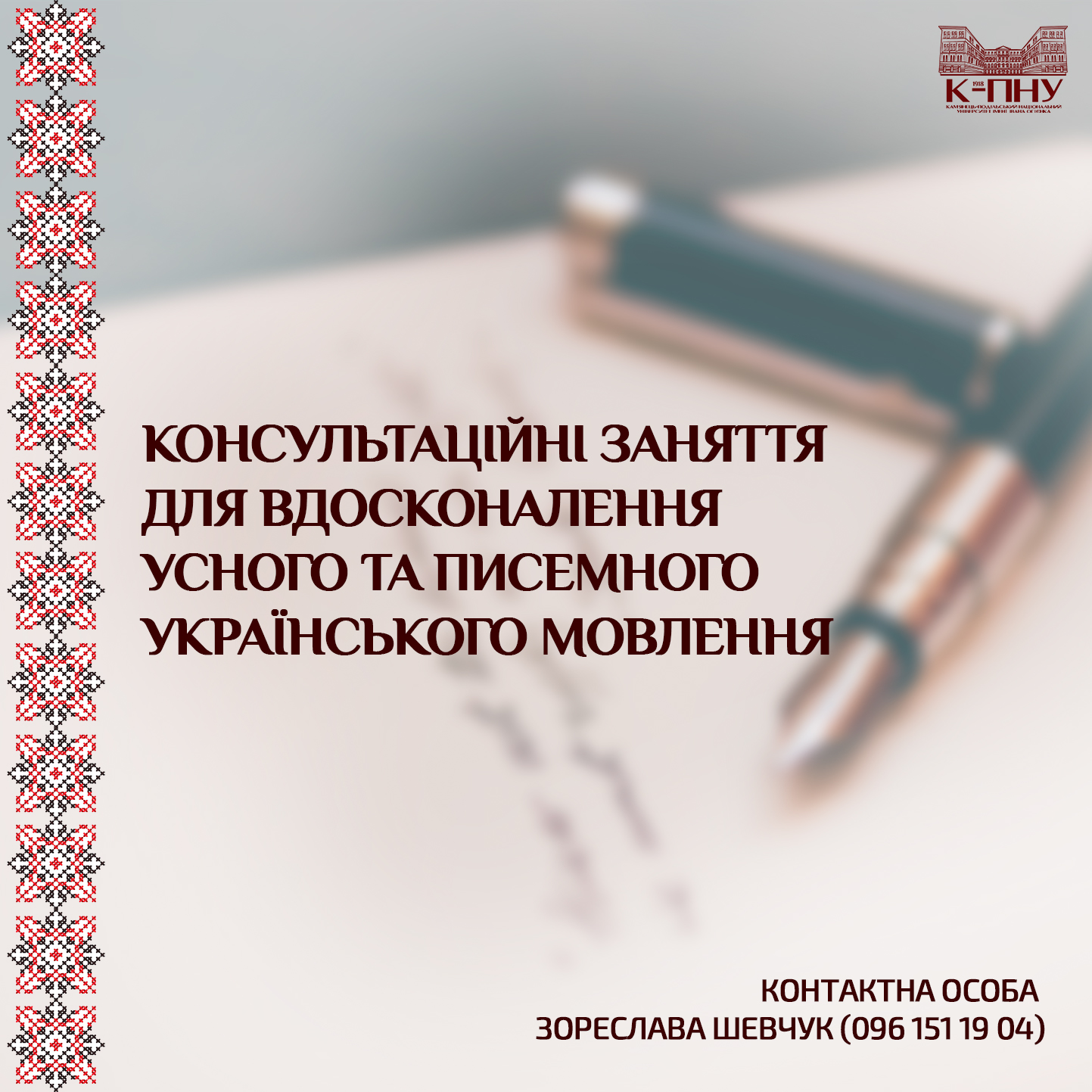 Кафедра української мови К-ПНУ започатковує проведення консультаційних занять для вдосконалення усного та писемного українського мовлення у 2023 році!