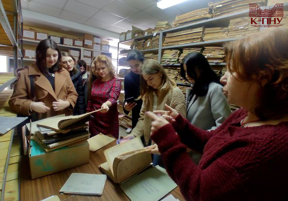 Дарина Полякова: «6 березня наша група завітала з оглядовою екскурсією до Кам’янець-Подільського міського архіву. Начальник архіву Юлія Пташник і заступник начальника з використання документів Національного архівного фонду Оксана Маслянко розповіли нам про історію закладу, ознайомили з веденням діловодства, формуванням архівних справ, що підлягають зберіганню та їх розміщенню в архівосховищі. Для нас, як для майбутніх журналістів, це було дуже корисно, оскільки архів може стати джерелом для написання унікального матеріалу. Так, ця робота вимагає чимало часу, але результат, який ми отримаємо потім, буде того вартий».