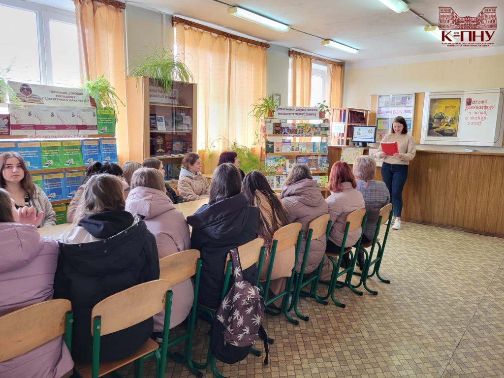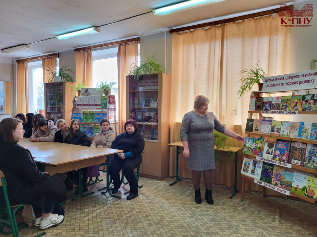 На зустрічі ознайомилися з книжковою експозицією на тему «Дитяча книжка – джерело навчання, виховання та творчого розвитку», яку підготувала завідувач сектору читального залу педагогічного факультету, Тамара Сологуб та провели дискусію: «як піднести дитині альтернативу книги, як відволікти її від «залипання» в мультики, серіали чи соцмережі тощо».