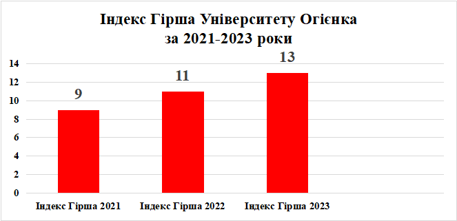 Упродовж останніх років згідно з результатами рейтингу бази даних SciVerse Scopus показник індексу Гірша Університету Огієнка постійно покращується на 2 позиції.