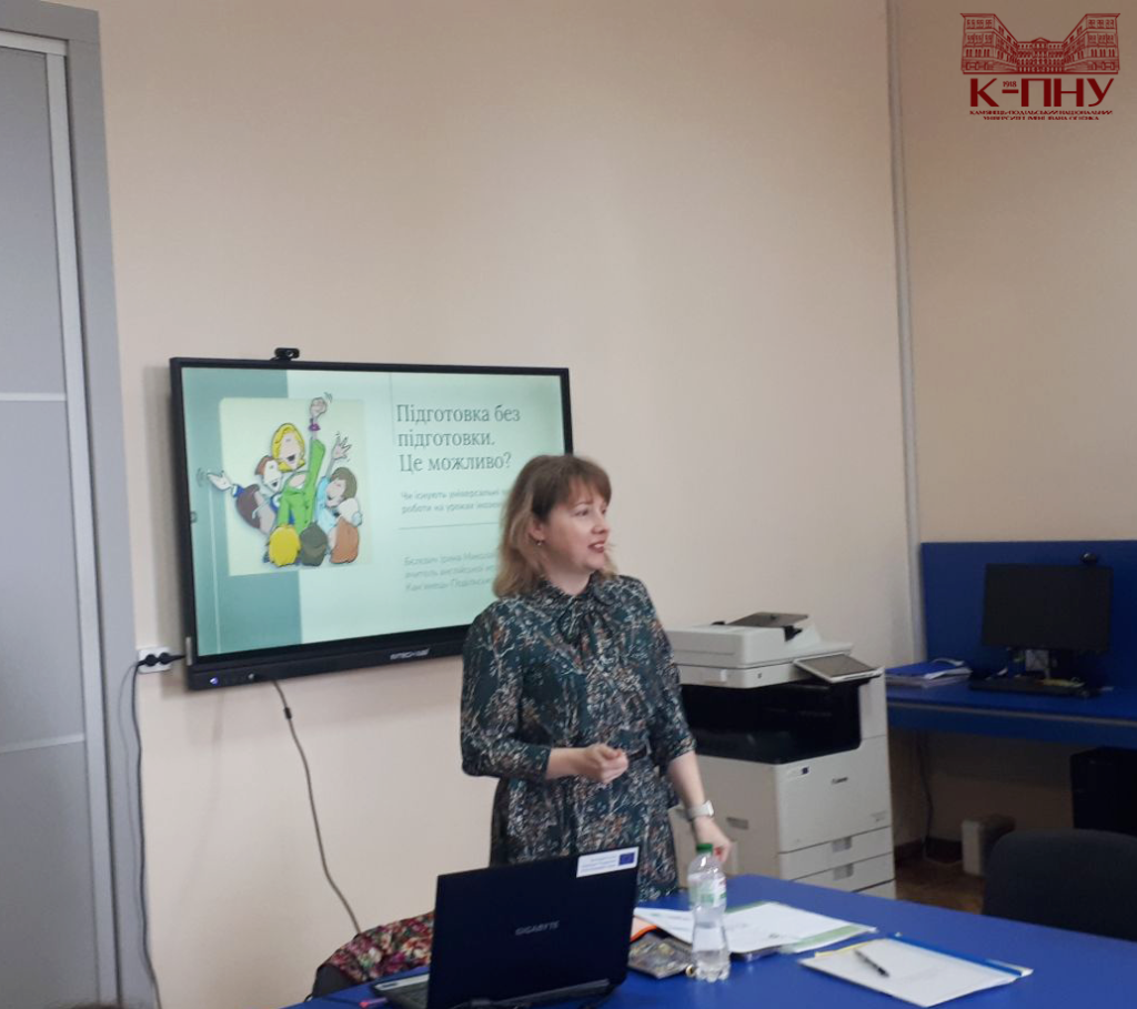 У своїй презентації лектор зосередила увагу на навчальних завданнях, які не потребують особливої підготовки і можуть бути ефективно вирішені завдяки вдало дібраним вправам, іграм тощо. Здобувачі спробували виконати деякі з них: «Structure + Content = Activity», «Numbered heads together», «Quiz – Quiz – Trade» тощо.