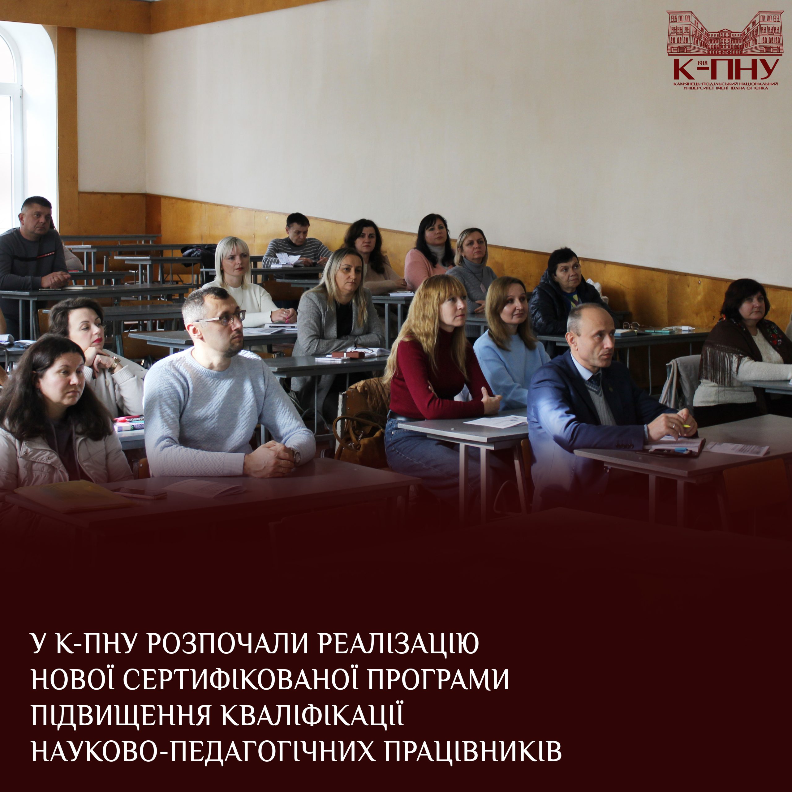 25 жовтня 2023 року в Кам’янець-Подільському національному університеті імені Івана Огієнка розпочали реалізацію сертифікованої програми підвищення кваліфікації науково-педагогічних працівників «Удосконалення професійної компетентності науково-педагогічного працівника як запорука якісної освітньої діяльності в К-ПНУ».