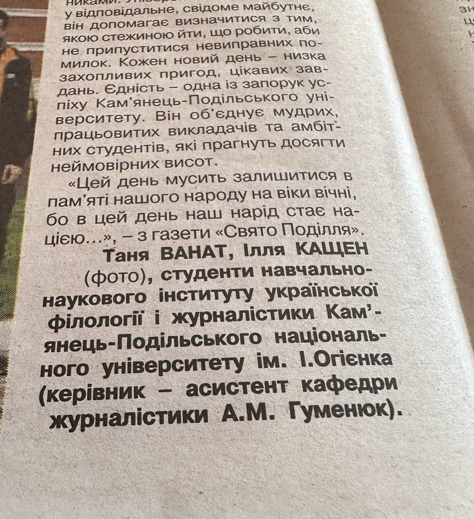 Нещодавно студенти навчально-наукового інституту української філології і журналістики Тетяна Ванат та Ілля Кащен презентували свою публікацію, що була опублікована вгазеті «Край Камʼянецький».