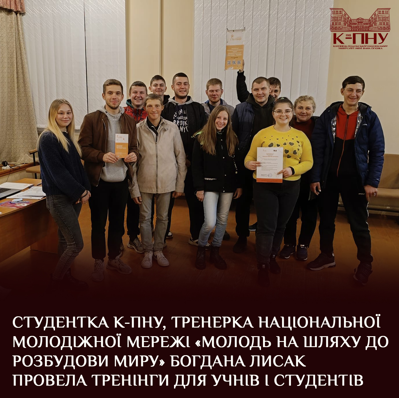 Студентка К-ПНУ спеціальності 232 Соціальне забезпечення Богдана Лисак – тренерка національної молодіжної мережі «Молодь на шляху до розбудови миру» ГО «ЛаСтрада – України».