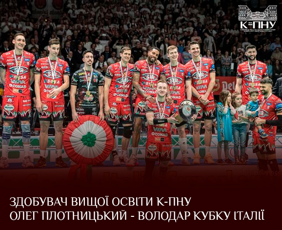 Здобувач вищої освіти К-ПНУ другого (магістерського) рівня спеціальності 017 Фізична культура і спорт Олег Плотницький, який грає за ВК «Перуджа», став володарем Кубку Італії. У півфіналі Олегова команда перемогла «Мілан» з рахунком 3:2 , у фіналі – «Монцу» з рахунком 3:1.
