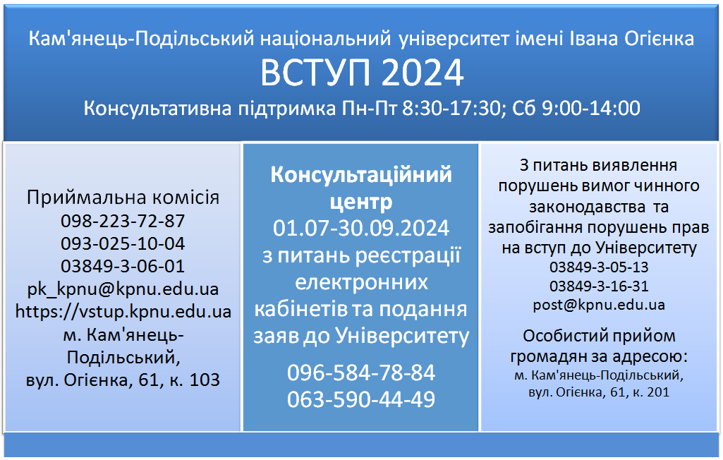 Нагадуємо, що в К-ПНУ працює консультаційний центр з питань вступу до Університету Огієнка.