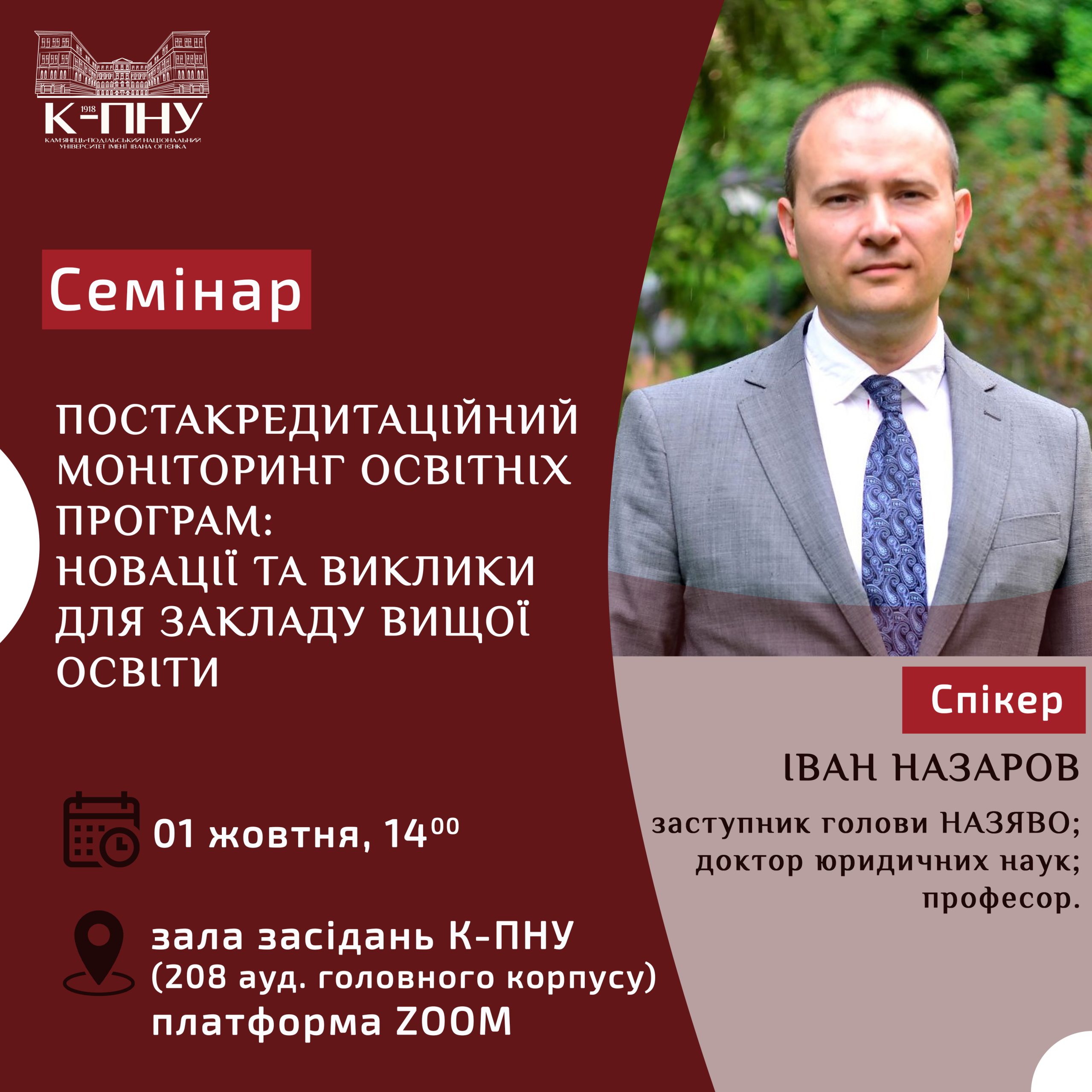 Семінар: «Постакредитаційний моніторинг освітніх програм: новації та виклики для закладу вищої освіти»