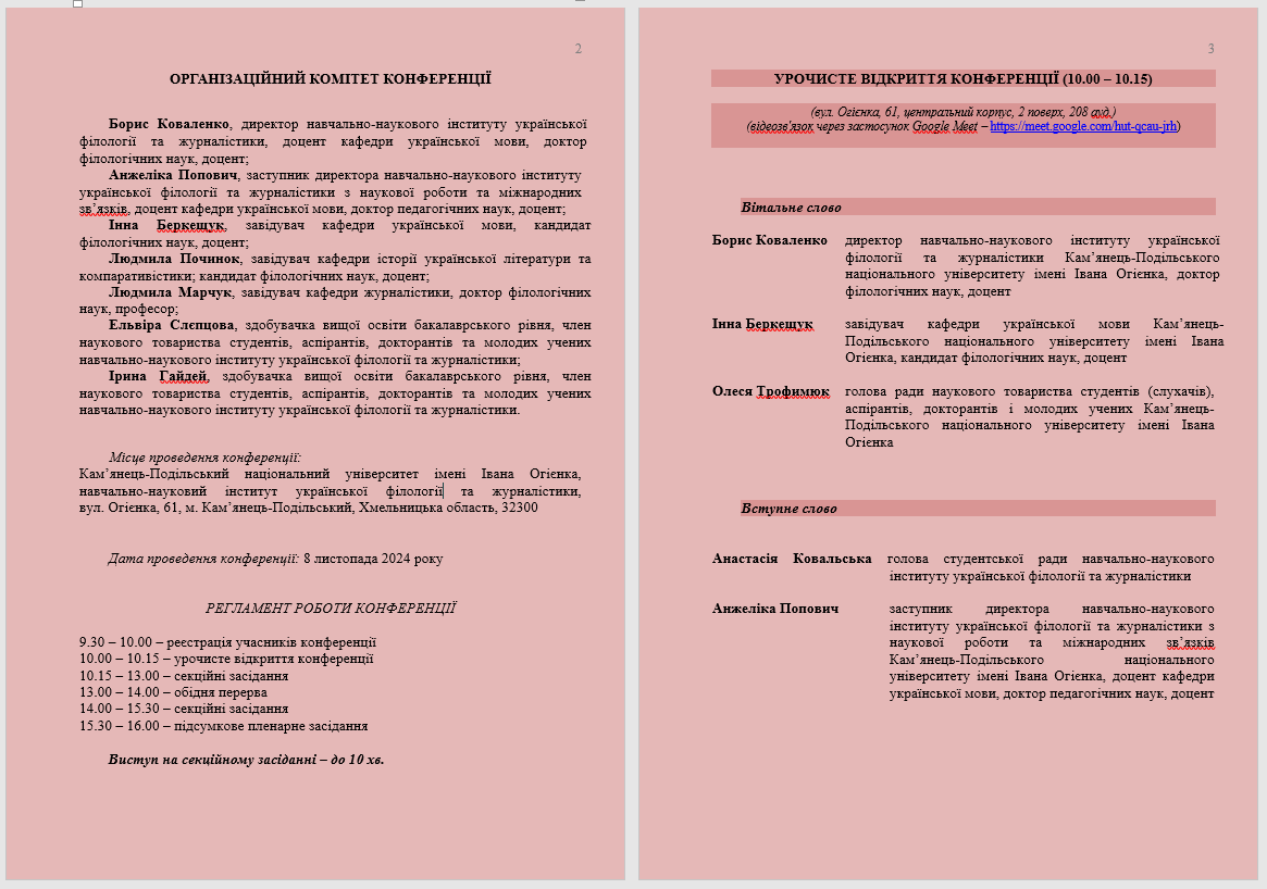 8 листопада 2024 року в навчально-науковому інституті української філології та журналістики відбулася ІІІ Всеукраїнська наукова конференція здобувачів вищої освіти «Нові парадигми сучасної філології».