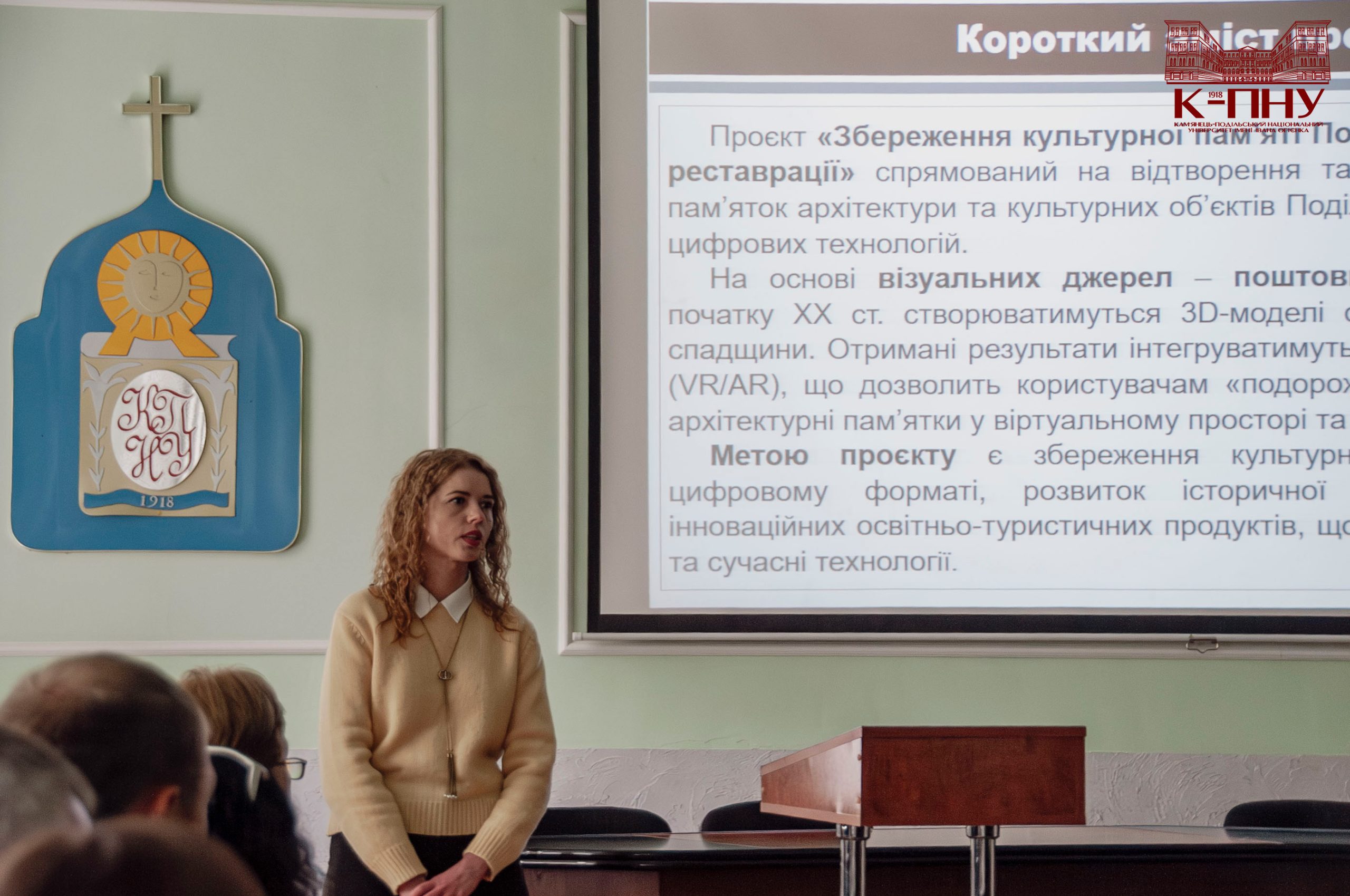 - Збереження культурної пам’яті Поділля засобами цифрової реставрації (керівник – кандидат історичних наук, доцент Ірина Паур).