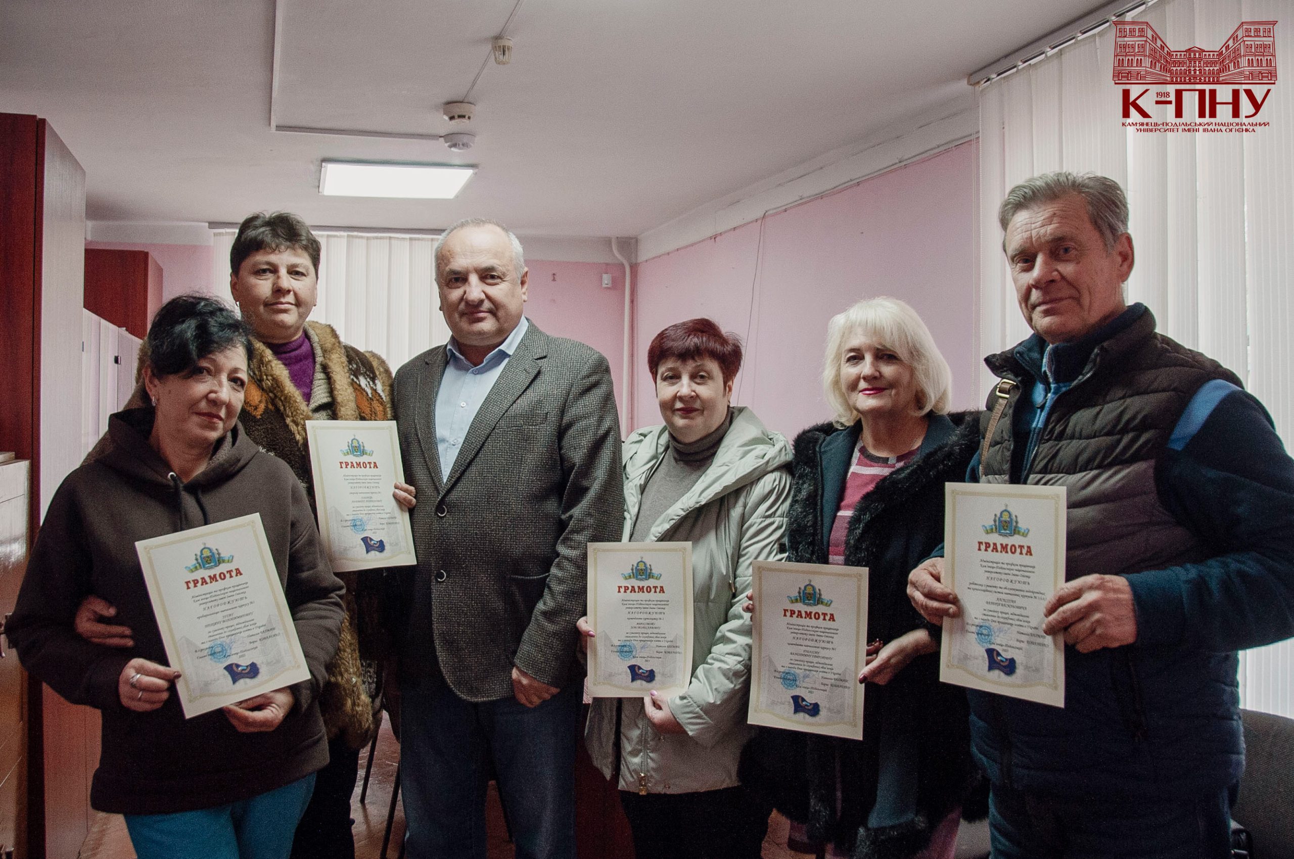 Цього ж дня Михайло Желізник, проректор з науково-педагогічної роботи, привітав і нагородив працівників адміністративно-господарської сфери Університету Огієнка: Зою Абросімову, коменданта гуртожитку №2, Валерія Алексєєва, робітника з ремонту та обслуговування водопровідних та каналізаційних систем навчальних корпусів № 3, 6, 4, 5, Тетяну Зуєву, прибиральницю навчального корпусу №1, Людмилу Лівінець, сторожа навчального корпусу №1, та Валентину Підлісну, коменданта навчального корпусу №1.
