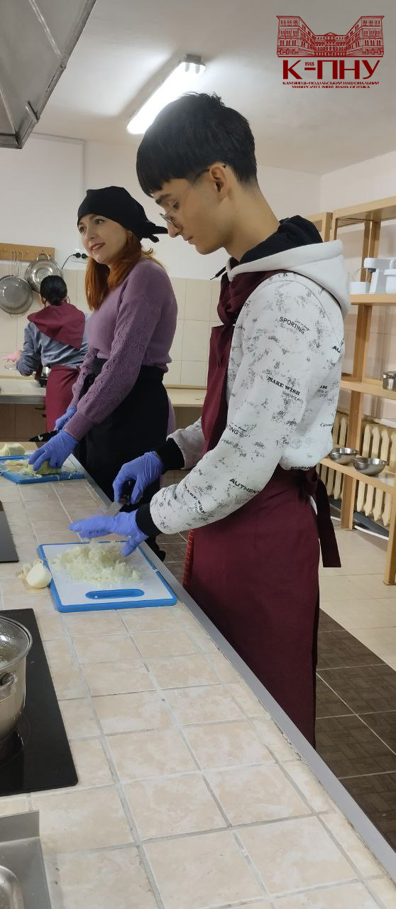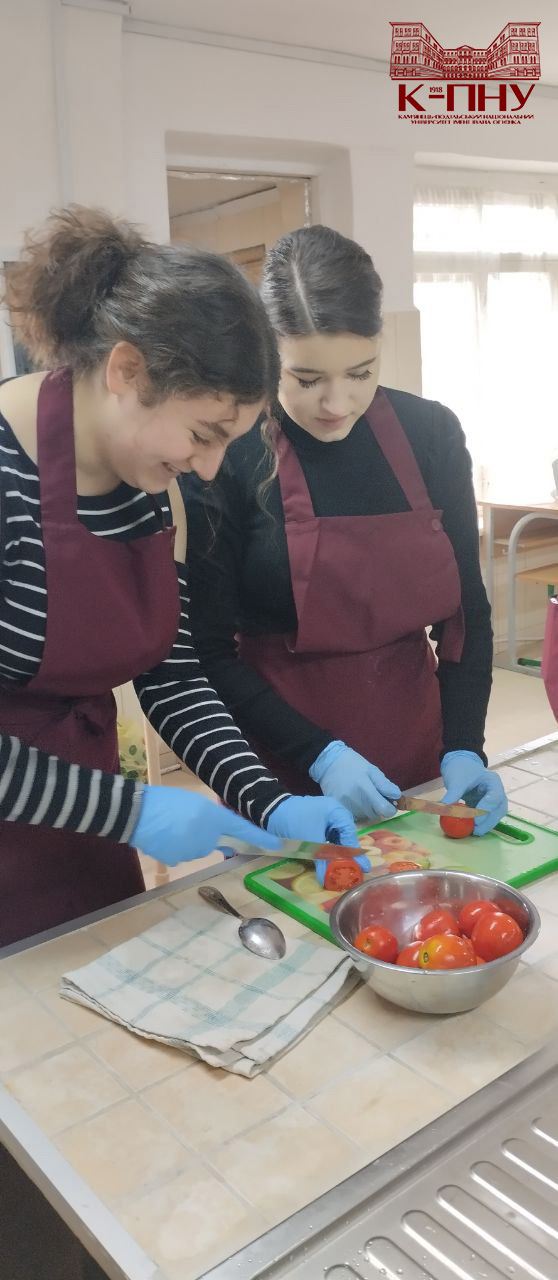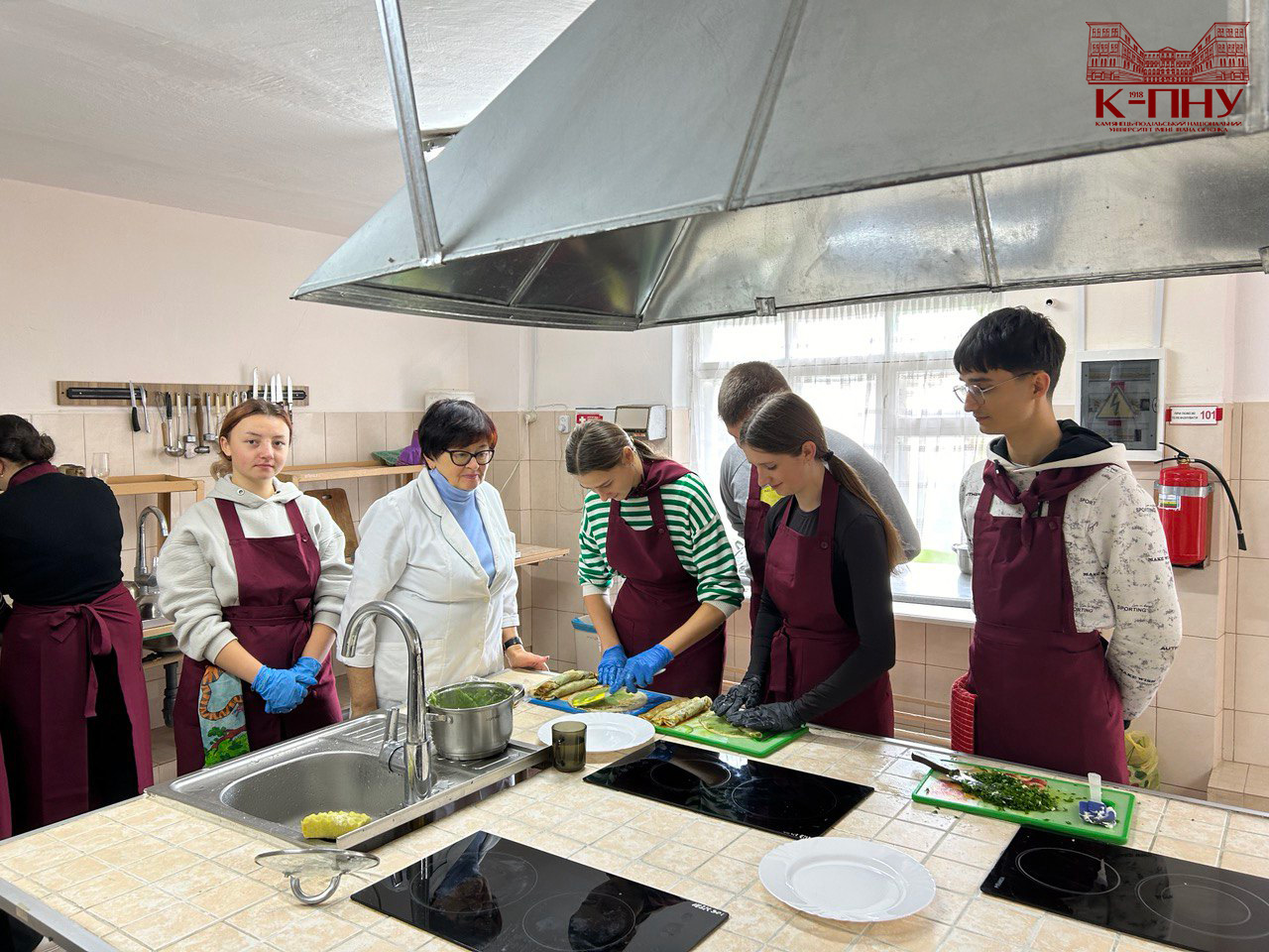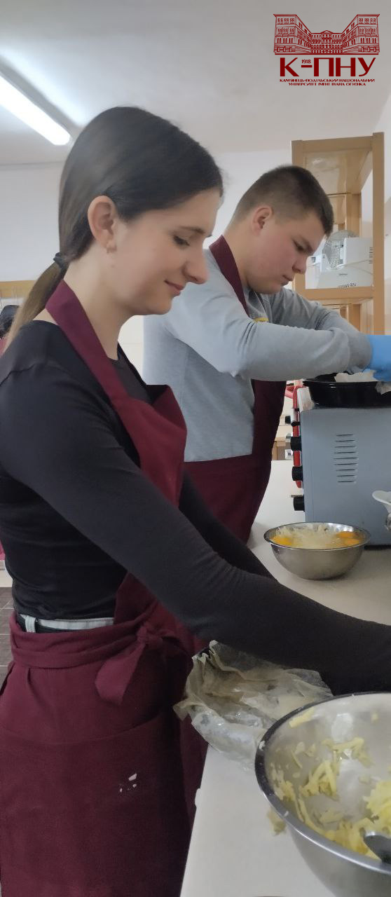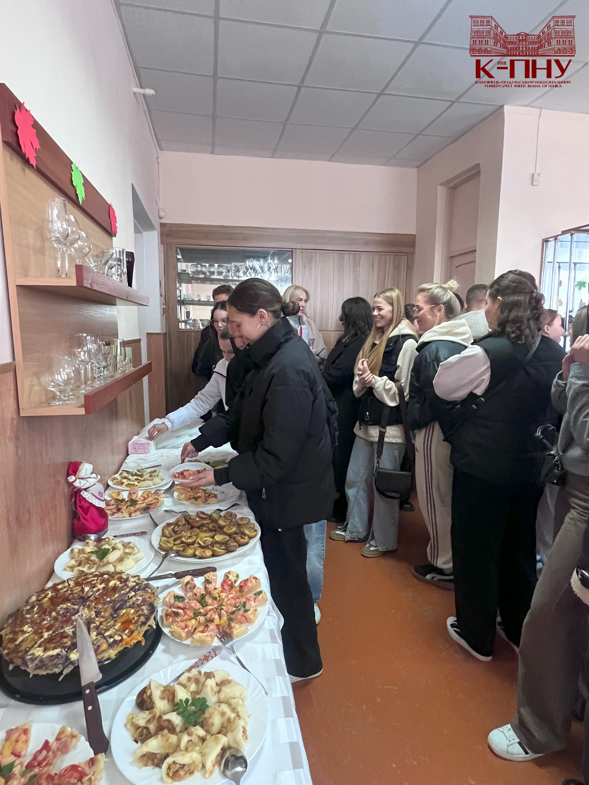Під керівництвом кандидата технічних наук, доцента кафедри Таїсії Веселовської в навчальній лабораторії технології виробництва продукції (товарів, робіт, послуг) студенти приготували частування з різноманітними начинками та в незвичному поданні за тематикою заходу.